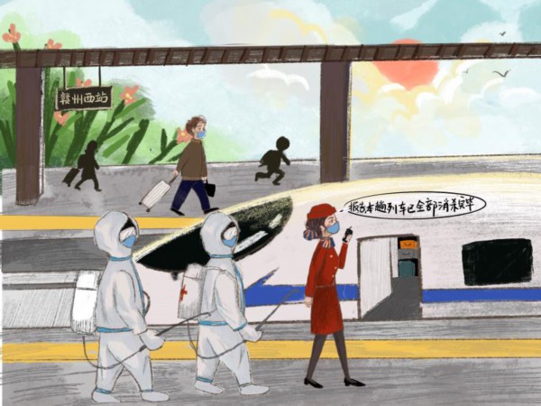 别样的春运,每个坚守岗位的人都了不起。随着春运的列车,牛年春节正踏步而来,让我们从自身开始做好防护,并向守护我们的人致敬,一起迎接下一个美好的春天。(文字:谢廖全红 漫画:吴怡憬 )