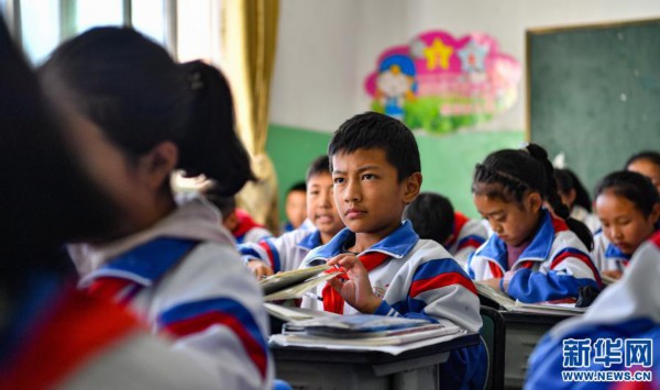 西藏昌都市实验小学六年级四班的学生在上藏语课(2020年10月5日摄)。新华社记者 晋美多吉 摄