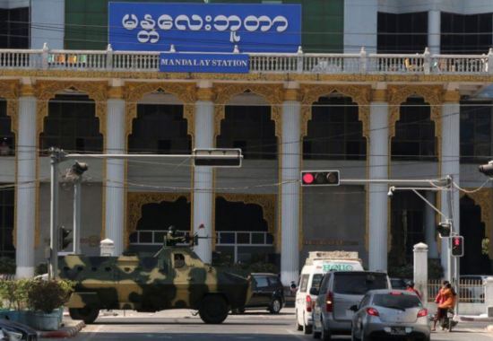 缅甸曼德勒街头的装甲车(路透社)