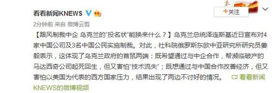 乌克兰总统泽连斯基近日宣布对4家中国公司及3名中国公民实施制裁。对此,社科院俄罗斯东欧中亚研究所研究员姜毅表示,这体现了乌克兰政府的首鼠两端:既希望通过与中企合作,帮濒临破产的马达西奇公司起死回生,但又害怕“技术流失”;既想通过与中国合作改善经济,但又害怕以美国为代表的西方国家压力,结果出现了两边不讨好的情况。