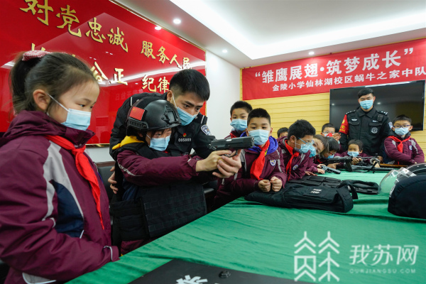 “看我这身行头,超酷!长大后我要当一名人民警察,保护人民!”金陵小学仙林湖校区三年级的小学生杨子游头戴特警帽,手持冲锋枪,向特警叔叔敬了个礼,脸上写满了骄傲和自豪。