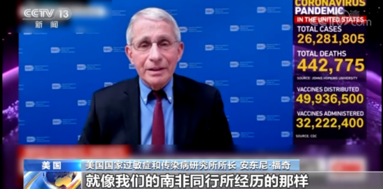 美国国家过敏症和传染病研究所所长 安东尼·福奇:目前的新冠病毒变异株尚未在美国占据主导传播地位,不过 一旦它“支配”了美国,就像我们的南非同行所经历的那样。即使你感染过新冠病毒,仍然有很大几率会再次被感染。