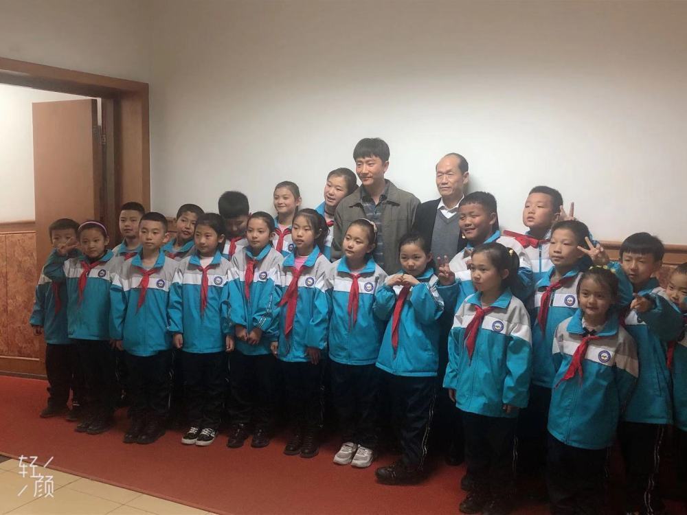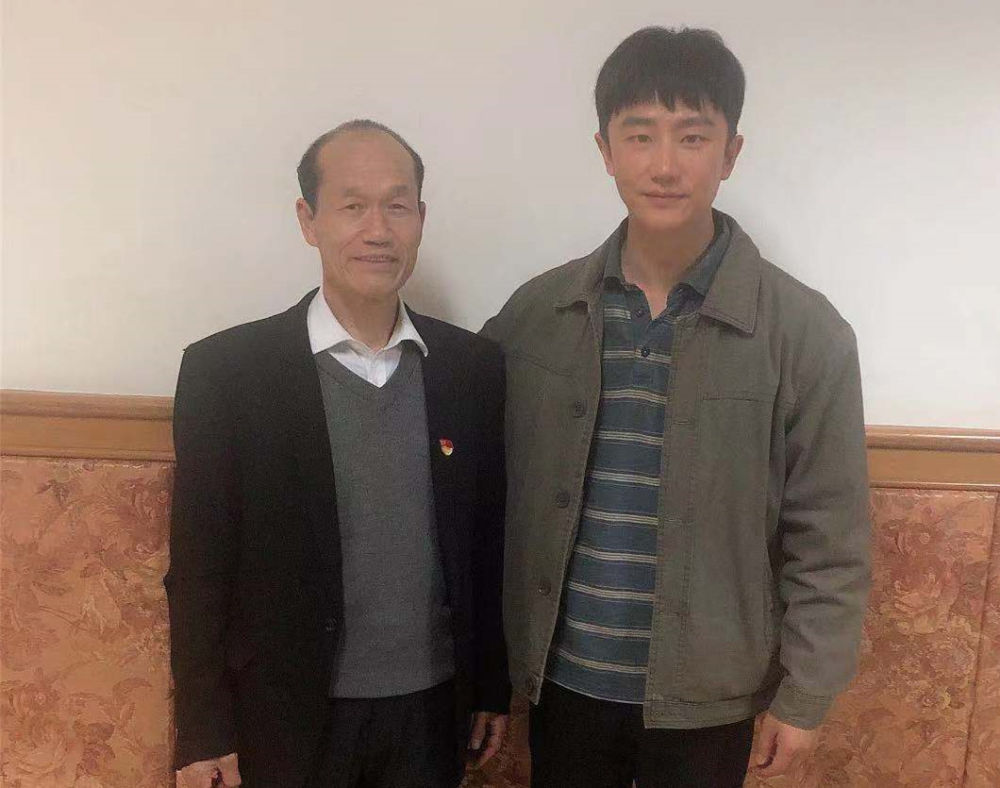 《山海情》剧中男主角马得福原型人物谢兴昌与马得福扮演者黄轩合影(受访者供图)