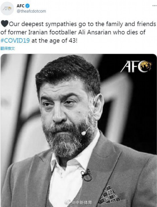 北京时间3日晚,亚足联发布讣告,前伊朗国脚安萨里安感染新冠病毒去世,终年43岁。据外媒报道,在1998年至2007年,安萨里安曾随伊朗国家队参加比赛。而在一周之前,另一位前伊朗国脚米纳万德同样因感染新冠肺炎去世,终年45岁。1998年世界杯预选赛上,米纳万德曾在与国足的比赛中替补出场。