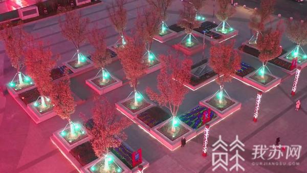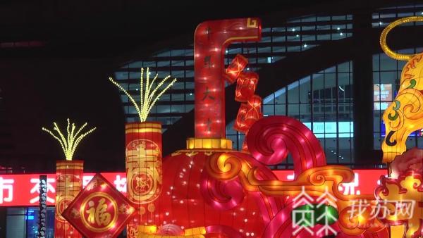 连云港市交通控股集团权属交通集团主管林田阔介绍:“春节将至,为了营造欢乐祥和的喜庆景象,我们在南北广场增加了七彩照树灯100多套,绿化带五彩网灯80多套,南广场行道树樱花球、满天星100多套,同时还在广场围栏安装了五彩跑马灯400多米、路灯杆中国结景观灯90多套。”