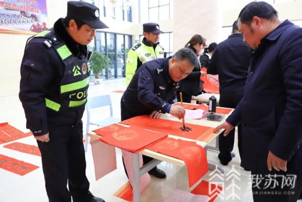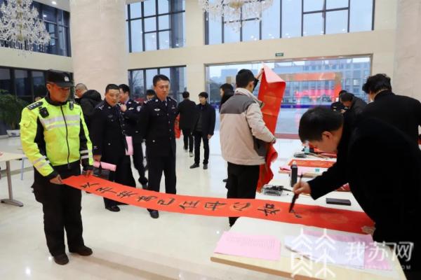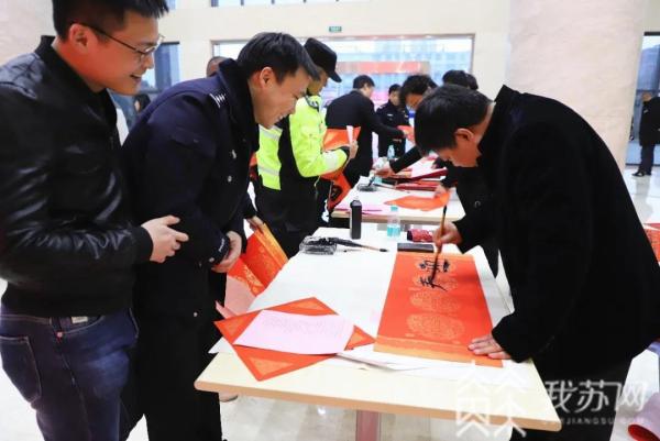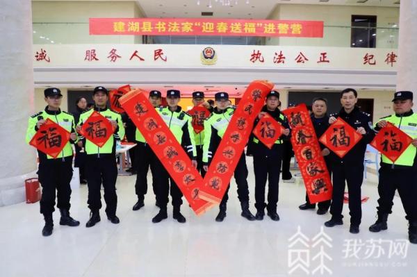 值此新春佳节来临之际,为丰富警营文化,进一步凝聚警心。2月3日下午,盐城市建湖县公安局,邀请建湖县书法家协会走进警营开展“书法家进警营 迎新春送万福”活动。