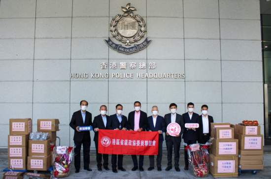 港区省级政协委员联谊会特意准备了口罩等抗疫物资,并订购了朱古力、芝麻糖、腰果、花菇等节庆礼物,希望为坚守在一线的警员带来一个安全又有气氛的新春佳节。联谊会还准备了一封感谢信,里面写着:“对香港警队过去的艰辛付出及专业精神致以最衷心的感谢以及最崇高的敬意。”