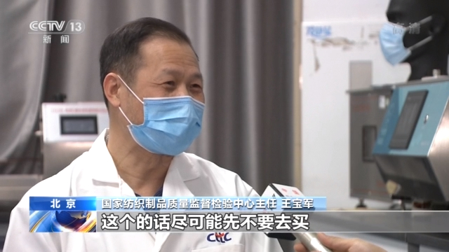 国家纺织制品质量监督检验中心主任 王宝军:它要有生产批准的号,另外还要有标准的号,它到底是按哪个标准去生产的。如果没有标准的号,这个的话尽可能千万不要去买,虽然说它也可能能达到这个要求,但是它没有标准号,你自己很难判断。所以就是首选比较正规的,标注比较正规的这种口罩。