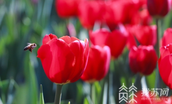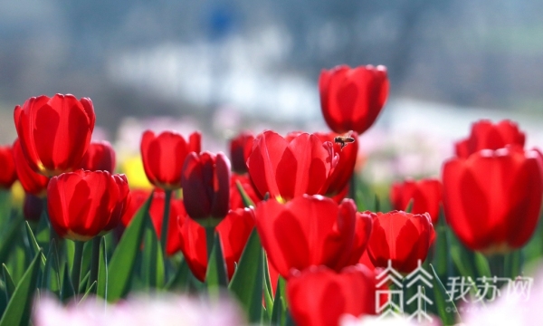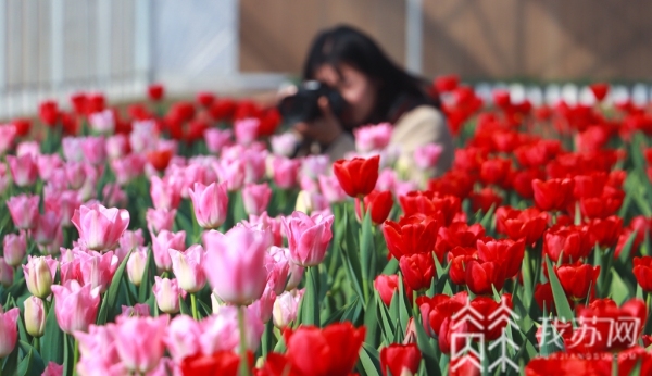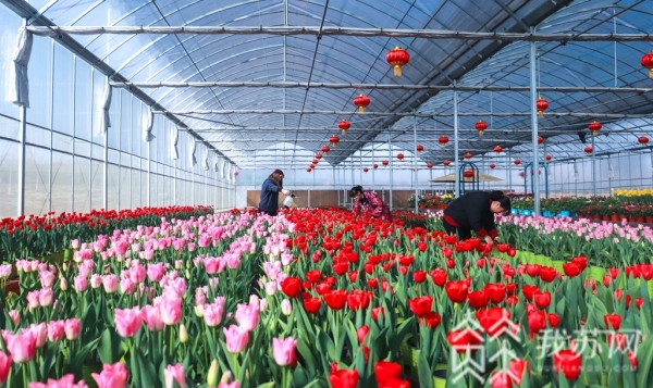 “立春”过后,气温回升,2月7日,江苏句容白兔镇伏热花海庄园里,今年首次通过大棚温室培育种植的郁金香、牡丹、月季、水仙花等二十几个品种的花卉竞相绽放,美不胜收,呈现出一派春意盎然的景象,为新春佳节营造出浓浓的喜庆,五彩缤纷的花儿也让人提前感受到春天的气息。