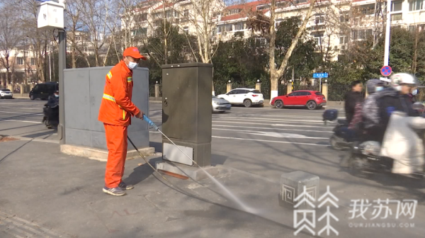 画面中正忙着冲洗地面的男子叫张辉,今年49岁,安徽涡阳县人,是南京秦淮区一名环卫工人,主要负责苜蓿园大街片区主次干道的冲洗和保洁。