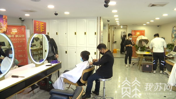 今天(2月7日),记者在南京街头走访了一圈发现,少数理发店张贴出了明年再见的公告,已经提前歇业。大部分理发店都还在正常营业。上午十点,记者在丹凤街一家理发店看到,店内已经有五六名顾客在理发、烫发了。经营者说,过年前这两天价格比平时略有上涨,但是与往年同期基本持平。