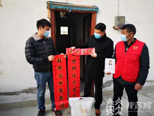 “谢谢各位的关心,春节前特意来看我们!”2月6日下午,在宿迁市宿豫区下相街道和信物流的宿舍里,陆桥社区的志愿者们为留宿过年的外乡人韩艳召一家送去了新春礼物。