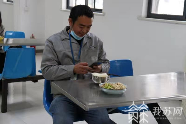 在宿迁高新区博迁新材料公司的食堂,李容成拨通了父亲的电话。“爸,家里最近还好吗?和您说个事啊,现在疫情防控形势严峻,今年过年我们不回去了,就在单位过年了。你们二老在家要注意身体啊。”