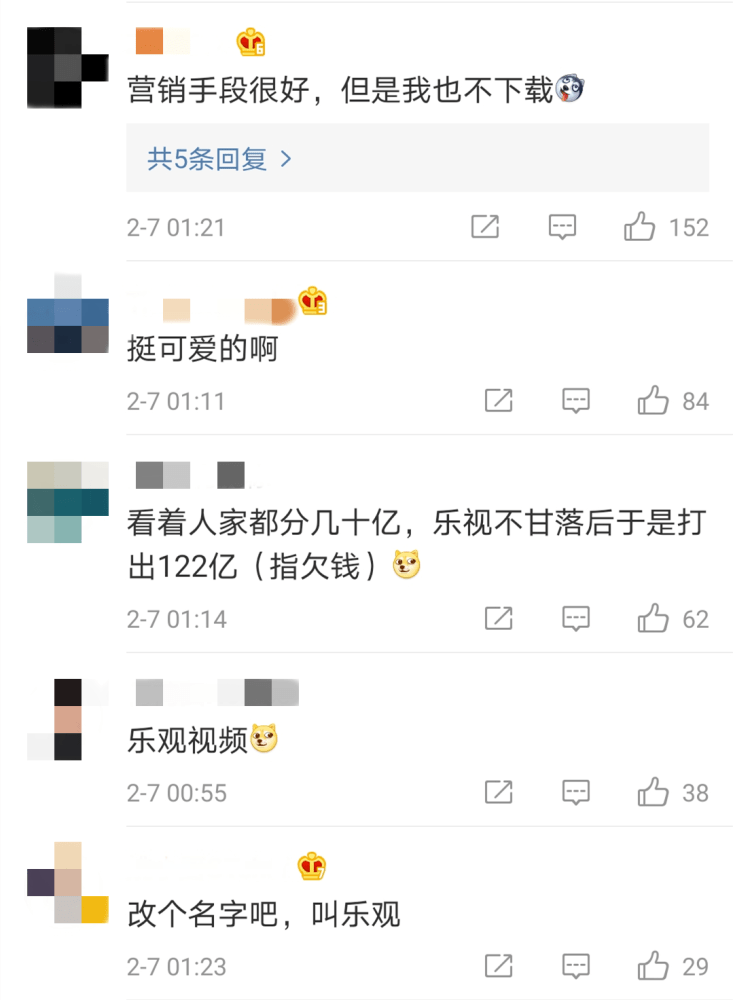 还有网友评论称,“改个名字吧,叫乐观”“乐观视频”。