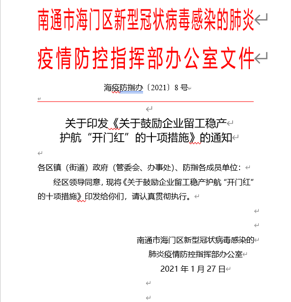 4.本措施由区疫情防控指挥部企业防控组负责解释;咨询电话:0513-82106977。
