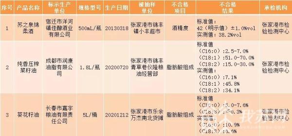 记者今天(2月8号)从张家港市场监管局获悉,为切实做好张家港春节期间食品安全监管工作,有效排查食品安全隐患,保障人民群众节日期间食品安全,近期,张家港市市场监管局(市食安办)组织对流通环节(消费量大的商超、集贸市场和批发市场)的粮食加工品(大米)、食用油、油脂及其制品(食用植物油)、酒类(白酒)、炒货食品及坚果制品、肉制品(腌腊肉制品)、糖果制品(糖果)、蔬菜(大白菜、冬笋、菠菜)和畜禽肉及副产品(猪肉)等重点食品进行了专项抽检,共抽检147批次,经检测,结果有1批次白酒酒精度未达明示值,2批次食用植物油脂肪酸组成不符合质量要求。