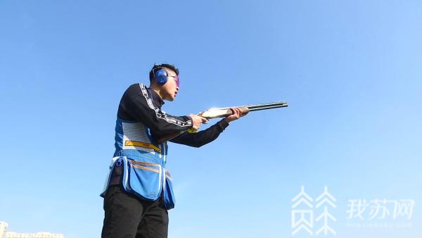 随着一声口令,两只飞碟从双向飞出,娄力文手起枪响,将飞碟应声击碎,打开枪膛,潇洒地将弹壳拨下,再重新装弹瞄准……像这样的操作,娄力文每天要重复一两百次。虽然只有不到27岁,但这名来自徐州的小伙儿练习射击已经十多年了。