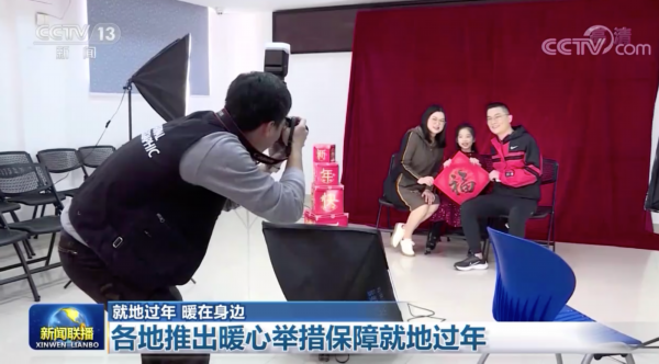 广东中山市东区街道东裕社区为留在当地过年的外来人员免费拍摄全家福,让大家感受到了浓浓的年味。