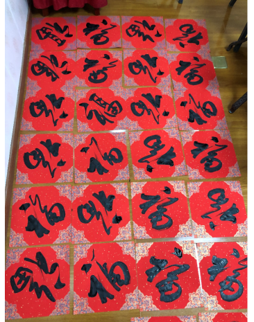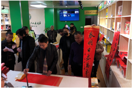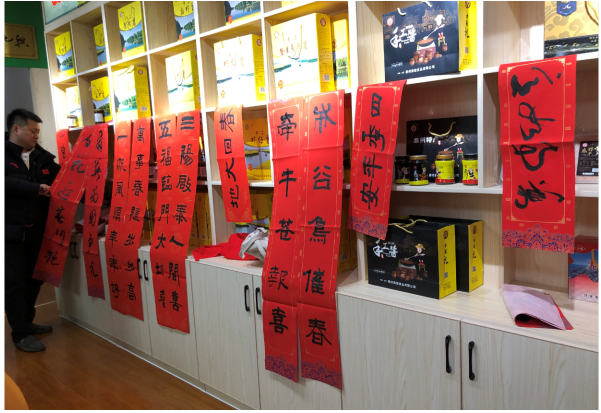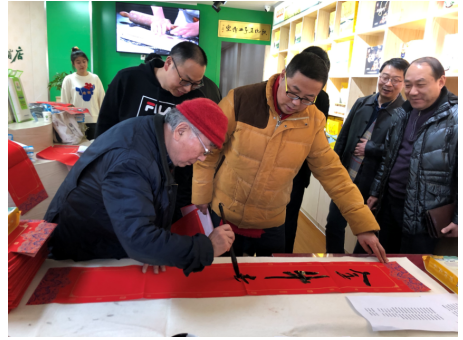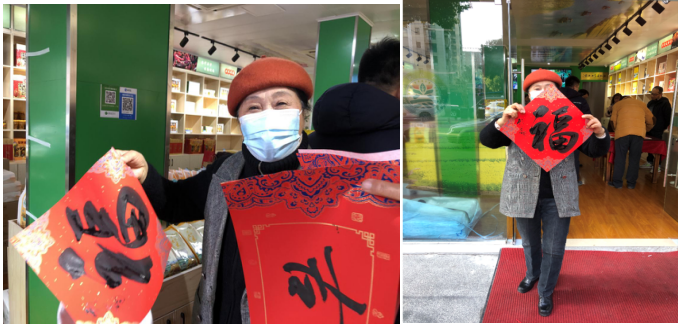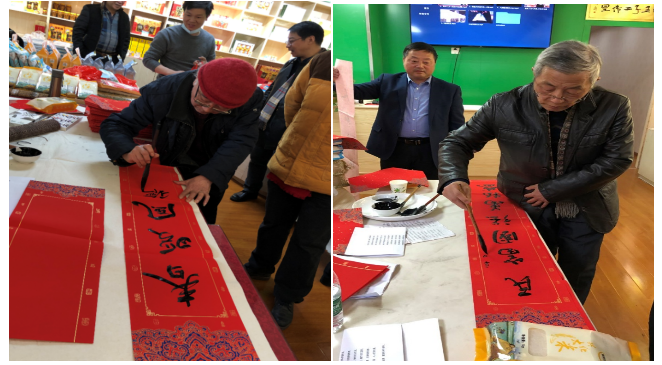 3个小时内,几位艺术家现场共创作对联、“福”字近300幅,确保每一位购买兴化农产品的顾客都能获得一幅作品。
