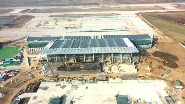 连云港花果山机场位于灌云县小伊镇境内,为4D级民用国际机场,是江苏省“两枢纽、一大、六中”的民航发展布局体系中规划定位的未来江苏省内大型机场、苏北地区国际航运中心。机场自开工建设以来,经过参建单位的艰苦努力,统筹协作,目前航站区主体结构均已完工,正处于装饰装修、机电安装及室外工程施工阶段,预计今年上半年基本建成。目前机场飞行跑道已实现合拢,离机场通航又跨进了一步。