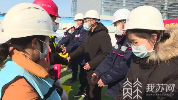 2月9日, 连云港花果山机场建设指挥部有关领导以及机场航站区中建八局项目管理团队,一起来到机场建设现场,给就地过年的机场建设工友们拜年,并发放春节慰问品。