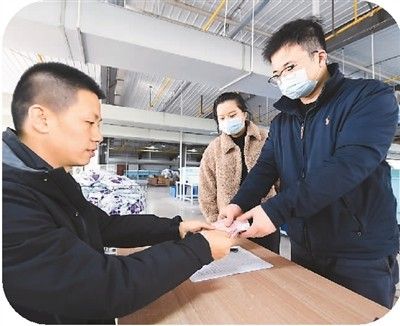 ↑近期,浙江省诸暨市人社部门与企业推出“共享员工”线上平台,为“共享员工”提供第一手资料进行人员匹配。图为2月3日,在位于诸暨市的浙江丰悦针纺有限公司车间内,员工在领取工资。新华社记者 徐 昱摄