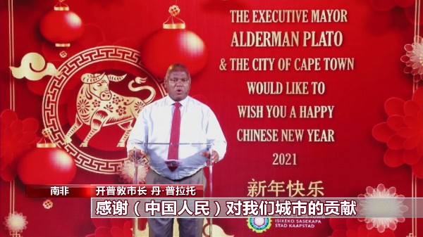 开普敦市长 丹·普拉托:我代表开普敦市祝大家在新的一年里 身体健康、万事如意,感谢中国人民对我们城市的贡献,非常感谢。