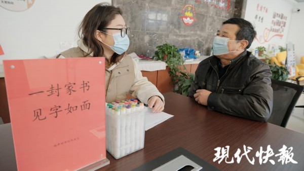 " 今年春节不回家,但尽孝不能少。" 近日,在扬州市广陵区曲江街道施井村党群服务中心,外来务工人员小何在志愿者钱淼岍的帮助下,寄出了一封特殊的家书,向家中的爷爷奶奶 " 隔空拜年 "。