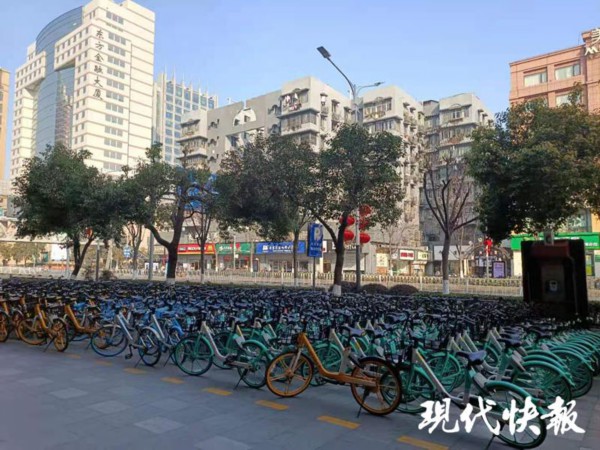 在洪武路印象汇广场,一排排共享单车整齐摆放着,南京新街口管委会城市管理科科长匡国峰介绍," 为了方便做好春节期间的管理和疫情防控,这里是专门划分出来的,集中摆放共享单车。" 据了解,目前可供摆放共享单车 300-500 辆。春节期间,共享单车公司也会定时对共享单车进行投放和消杀。