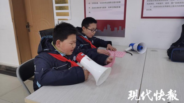 2 月 2 日下午,他和同学杨汨岚一起来到社区,用防疫喇叭录制童声版的 " 南京防疫十条 ",宣传防疫知识。铁匠营社区社工王小影告诉现代快报记者,社区一共有 16 个居民小区,几乎都配备了小喇叭。" 之前听惯了成年人录制的防疫宣传口号,如今换成小朋友的声音,更能吸引大家的注意,也能起到比较好的宣传效果。"