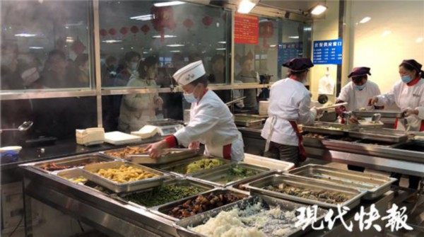 据了解,今年春节,南京大学鼓楼校区、仙林校区在校学生总数共加起来有 1774 名。南大后勤服务集团膳食中心副主任徐来彬介绍,其实南大以往每年都有免费年夜饭,今年因为很多同学响应号召就地过年,所以人数增加不少。" 相应地,员工人手也增加到 10 个左右,而且我们今天除了两个套餐,临时又增加了一些菜式,供学生们选择。" 考虑到不同地区的饮食习惯,还准备了汤圆、水饺、包子、砂锅等等美食,都是免费供应。
