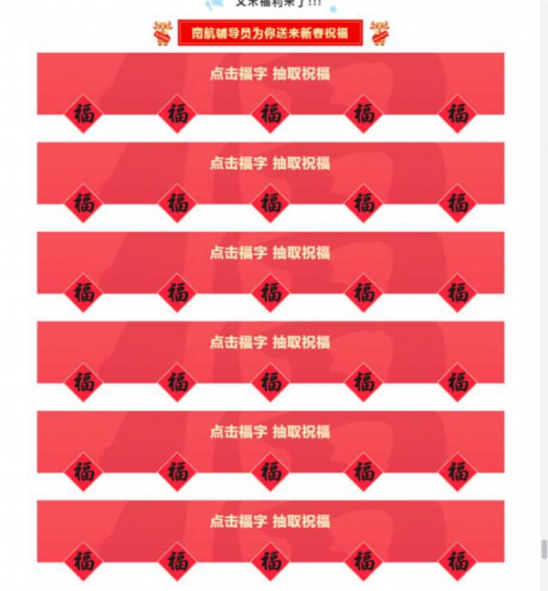 此外,南航每一位辅导员还为同学们准备了各自的新春祝福," 点击福字、抽取祝福,愿所愿皆如愿,好运常伴左右。"