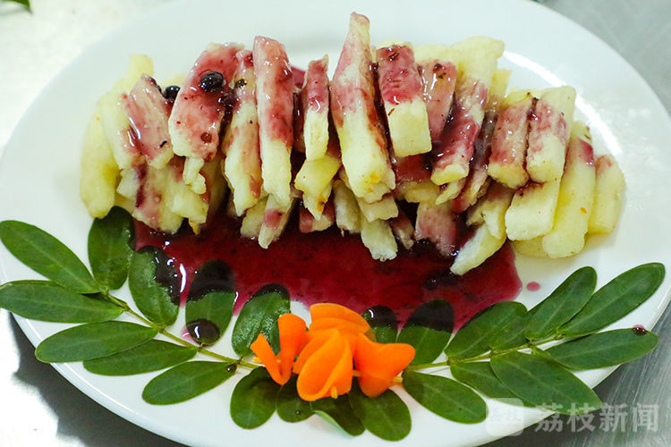 山药含有多种营养素,可强健机体,养胃润肺,浇上蓝莓汁,营养又美味。