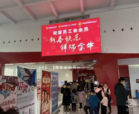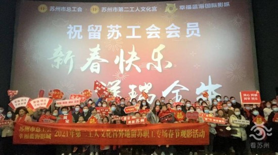 “前期,苏州市总工会通过‘互联网+工会’综合服务平台,开展了2021年’留苏过大年 工会暖心包’外地留苏职工活动,共发放各类暖心礼券5万多份。工会阵地也纷纷开设专场,免费为留苏职工提供精彩纷呈的各类活动。”苏州市第二工人文化宫负责人孙勇告诉记者,“而第二工人文化宫则是开设了15日、16日两个专场,免费发放了500张幸福蓝海的观影券和翔立方体育锻炼券3000份,抢到票的职工们都是特别幸运的。”