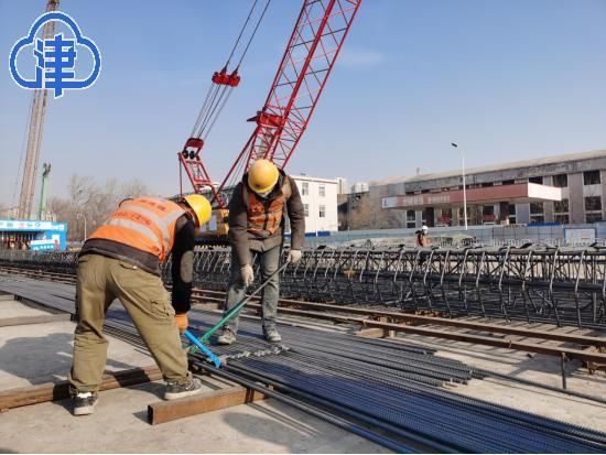2月15日(农历大年初四),在天津地铁7号线外院附中站施工现场,记者看到,工人们正在捆扎、焊接钢筋,为地连墙施工做准备……