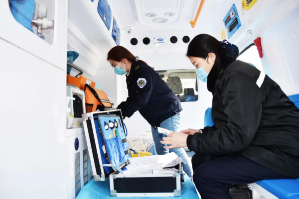 2月11日晚上10时30分,该医院120急救中心接到命令:“薛行安置小区有母女二人在洗澡过程中,意识不清,需要紧急救治。”“收到!马上出发!”急救中心的医生徐千、护士徐慧娴、司机徐建刚立刻穿好防护装备启动急救车,火速赶往急救地点。