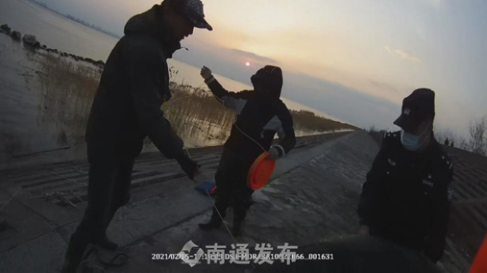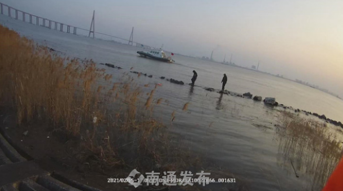 2月15日,大年初四,长江公安通州派出所接到报警:两男子被困苏通大桥下的长江中。一场救援火速展开。