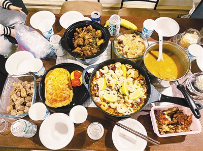 2021年元旦跨年时,李煜哲与在美的中国同学一起做了一桌好菜。