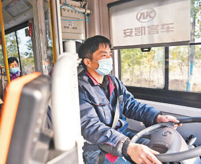 2月17日,安徽省合肥市肥西县公交公司的驾驶员胡春驾车行驶在乡村公路上。新华社记者 刘军喜摄
