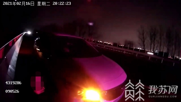 2月16日晚上20:30左右盐城市高速六大队教导员杨义军在盐洛高速-53公里100米处巡逻时发现一辆白色小轿车开着双闪停在应急车道。民警立刻靠边停车下车询问情况,只看见一名女子蹲在马路边上哭,民警询问得知原来一开始开车的是女子的丈夫,因为中途吵架了闹了点小矛盾,一气之下就把车停在了应急车道,丈夫气得拿了车钥匙下车一个人往前面走,把儿子和媳妇和车扔在原地。