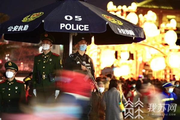 春节期间,针对各景区景点的大量客流,特警支队牵头组织武警、消防等力量组成反恐单兵组,在夫子庙景区周边道路部署武装巡逻车,做好外围突发事件处置工作。