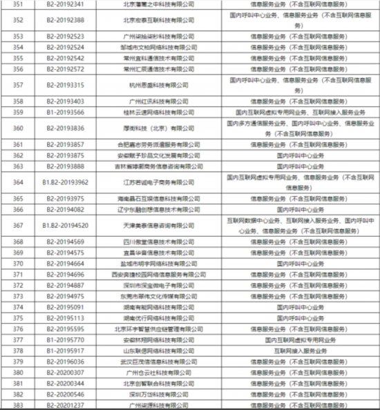 经审核,工业和信息化部认为辽宁弘昊信息技术有限公司等20家企业符合《电信业务经营许可管理办法》第三十三条第一项规定的注销情形,中电华通通信有限公司等151家企业符合《电信业务经营许可管理办法》第三十三条第二项规定的注销情形,魔匣(上海)信息科技有限公司等212家企业符合《中华人民共和国行政许可法》第七十条第三项规定的注销情形。现依法注销上述383家企业相关跨地区增值电信业务经营许可证。