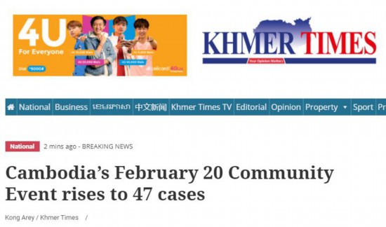 《柬中时报》称,柬卫生部以“2.20”事件形容第三次暴发的社区传播事件。根据《高棉时报》最新消息,“2.20”事件累计确诊47例。