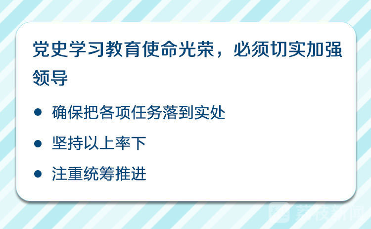娄勤俭强调,党史学习教育使命光荣,必须切实加强领导,迅速形成党史学习教育的工作合力。要压实工作责任,把握正确导向,明确推进举措,加强督促指导,严明工作纪律,营造浓厚氛围,力戒形式主义,确保把各项任务落到实处。要坚持以上率下,发挥好领导干部的示范带动作用,引领推动党史学习教育扎实开展。要注重统筹推进,把党史学习教育与“不忘初心、牢记使命”主题教育常态化结合起来,与持续深化思想解放结合起来,与落实“十四五”开局之年各项重点任务结合起来,更好地将党史学习教育过程中激发出来的信念信心、热情激情,转化为攻坚克难、干事创业的具体行动,凝聚成“争当表率、争做示范、走在前列”的强大动力,奋力谱写“强富美高”新江苏建设的现代化篇章,以良好精神风貌和优异成绩庆祝中国共产党成立100周年。