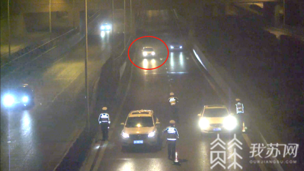 2月20日晚上10点多钟,徐州交警支队高架快速路大队民警,在西三环高架南岗地下通道出口处设卡检查时,发现一辆白色轿车在距离检查点约30米处突然停车,并迅速往后倒车,民警立即上前查看。