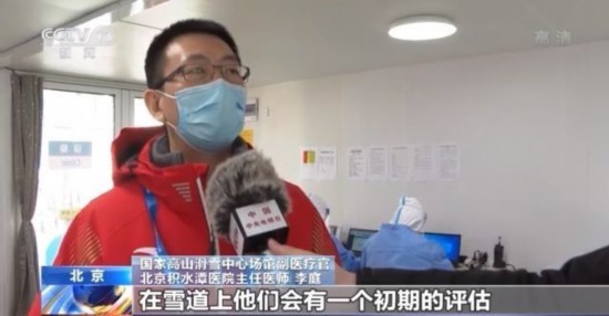 国家高山滑雪中心场馆副医疗官 北京积水潭医院主任医师 李庭:在雪道上他们会有初期的评估和早期的生命支持,但是到我们这,我们会进行进一步评估和高级生命的支持,让病人达到一个比较平稳的状态。