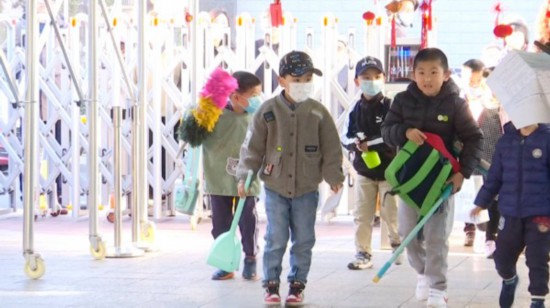 “我们捡了两袋树叶,要把学校打扫得干干净净的。”小朋友卢昱轩说。