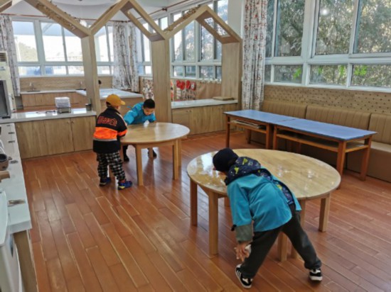 “我是‘小小魔力擦’,负责擦柜子和桌子。”小朋友周丹宸说。