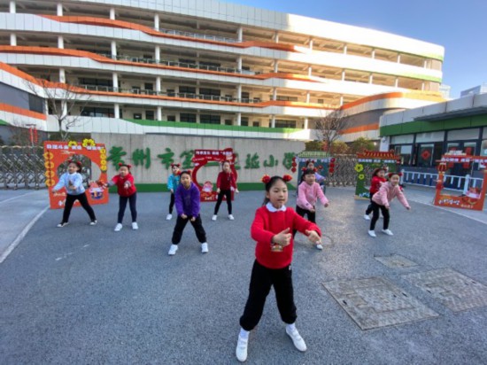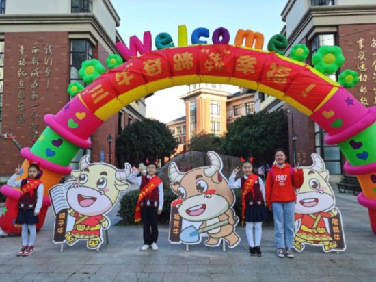 在常州第二实验小学门口,“牛”成为当仁不让的主角,精彩的舞蹈表演,牛年打卡照相,既是新年祝福,也是寄托新学期美好愿望。学校希望以中国传统牛文化,激励孩子们发扬老牛的勤恳精神努力学习。