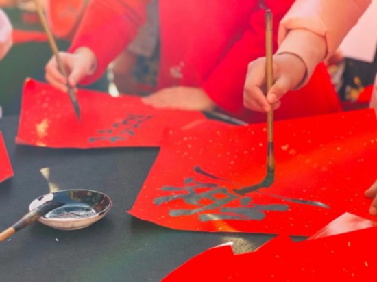常州市华润小学以汉字为主题,报到的学生们在方形福纸上写下年度汉字,把爱党、爱家乡、爱校园、爱师长等感情凝结在一个个汉字中。